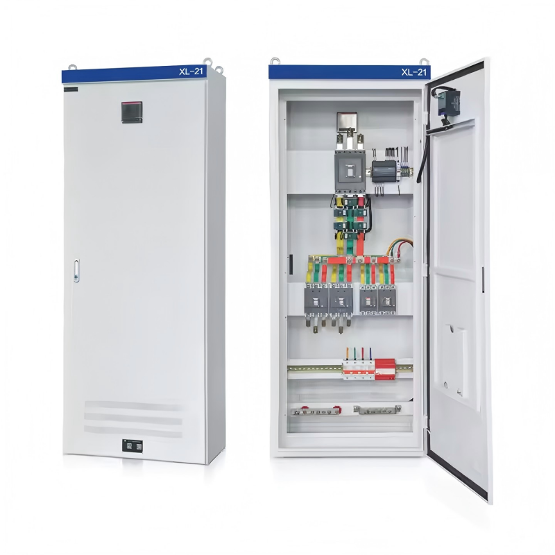 XL-21 लो-वोल्टेज बिजली वितरण कैबिनेट का उपयोग मुख्य रूप से औद्योगिक और खनन उद्यमों में बिजली वितरण के लिए तीन-चरण, तीन-तार और तीन-चरण, चार-तार सिस्टम का उपयोग करके 50 हर्ट्ज तक एसी आवृत्तियों और 500 वी तक वोल्टेज के साथ-साथ बिजली प्रकाश व्यवस्था के लिए किया जाता है। यह मुड़ी हुई स्टील प्लेटों से निर्मित एक बंद घेरा है। चाकू स्विच ऑपरेटिंग हैंडल ऊपरी दाएं सामने वाले कॉलम पर स्थित है, जो पावर स्विचिंग प्रदान करता है। बसबार वोल्टेज को इंगित करने के लिए वितरण पैनल पर एक वोल्टमीटर स्थापित किया गया है। सामने का दरवाजा आसान निरीक्षण और रखरखाव के लिए सभी आंतरिक घटकों को उजागर करता है। यह वितरण कैबिनेट अत्याधुनिक घटकों का उपयोग करता है, जिसके परिणामस्वरूप एक कॉम्पैक्ट डिजाइन, आसान रखरखाव और लचीली वायरिंग कॉन्फ़िगरेशन होती है। शॉर्ट-सर्किट सुरक्षा के लिए एयर सर्किट ब्रेकर और फ़्यूज़ के अलावा, कैबिनेट में संपर्ककर्ता और थर्मल रिले भी शामिल हैं। सामने के दरवाज़े में बटन और संकेतक रोशनी की व्यवस्था है।